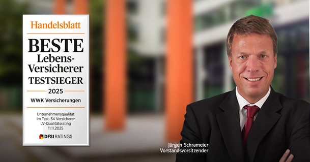 Wie schon im Vorjahr belegt die WWK Lebensversicherung auch 2025 den ersten Platz im DFSI-Rating. Substanzkraft und Produktqualität gehen zu jeweils 40 Prozent in das Rating